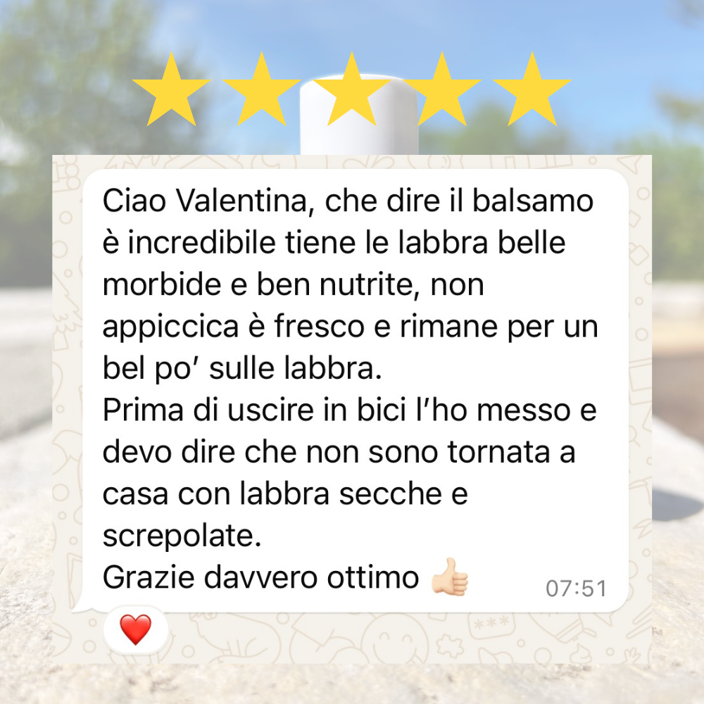 Il composto così ottenuto da vita al nostro balsamo labbra, un prodotto frutto di molti mesi di studio e campionature.